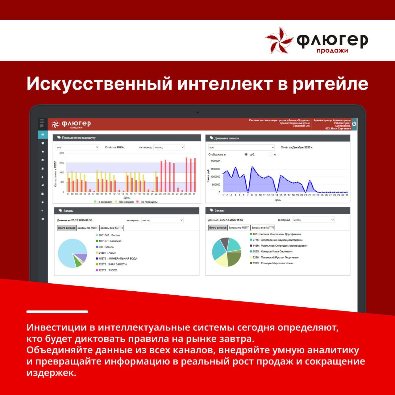 «Флюгер-Продажи» активно интегрирует технологии искусственного интеллекта и машинного обучения, чтобы сделать работу системы не просто автоматизированной, а интеллектуальной и прогнозирующей.