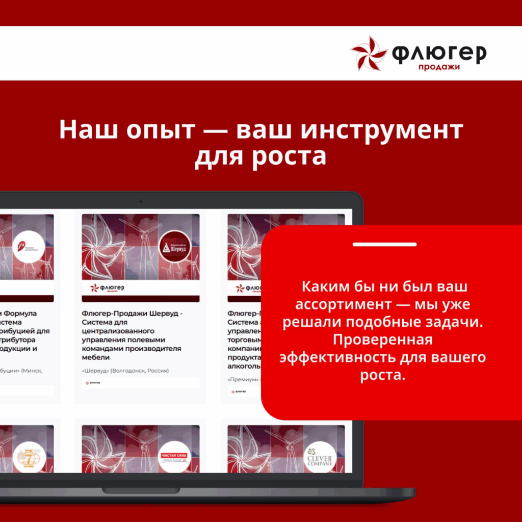 Этот широкий охват — лучшее доказательство гибкости и надёжности нашей системы. Если ваш бизнес построен на движении товаров, система «Флюгер-Продажи» уже содержит успешный опыт работы с вашей спецификой.