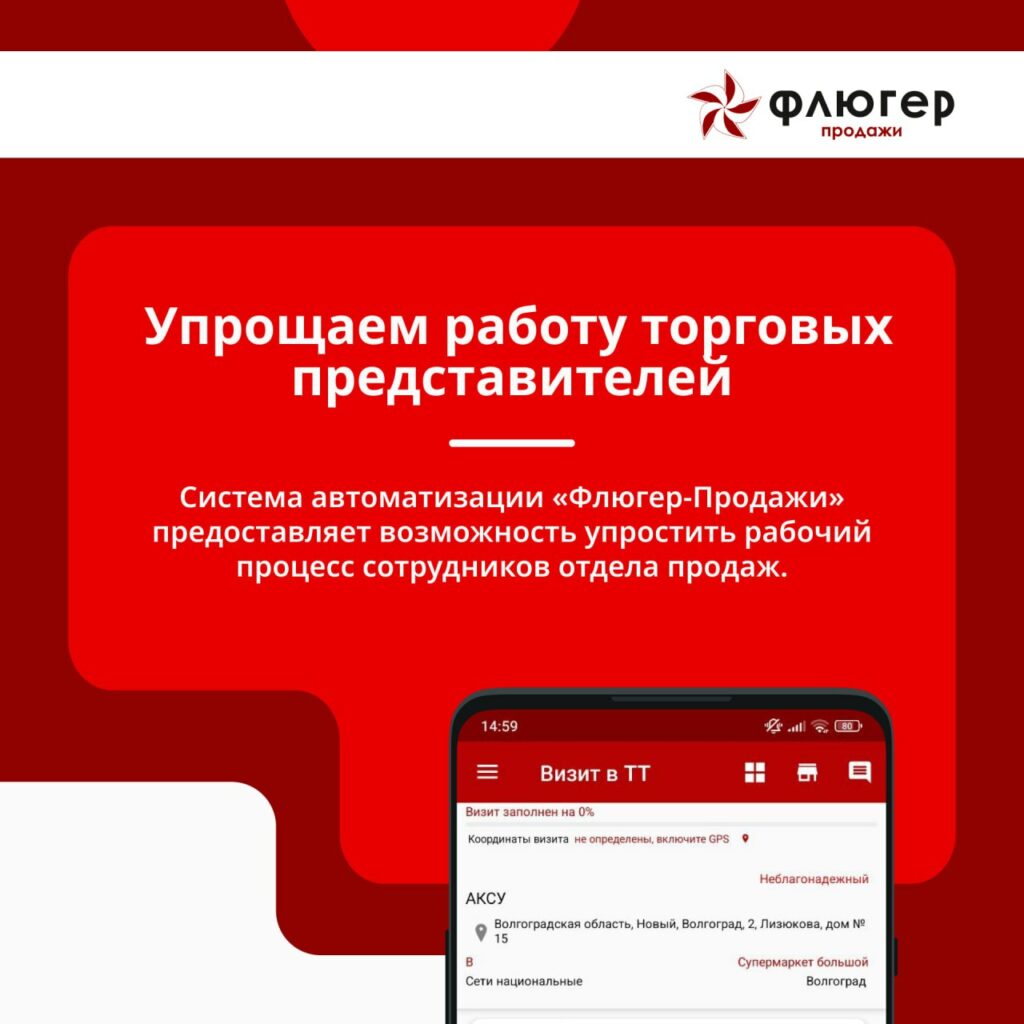 Флюгер-Продажи» помогает торговым представителям работать эффективнее: